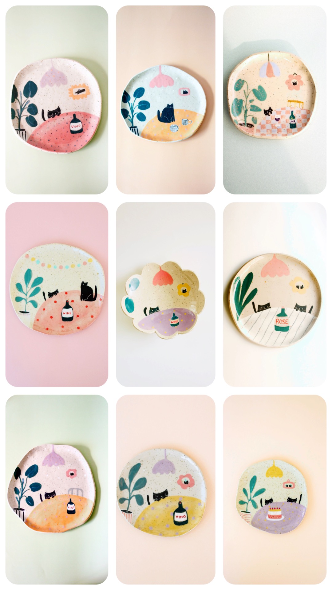 CAT AND WINE plate small