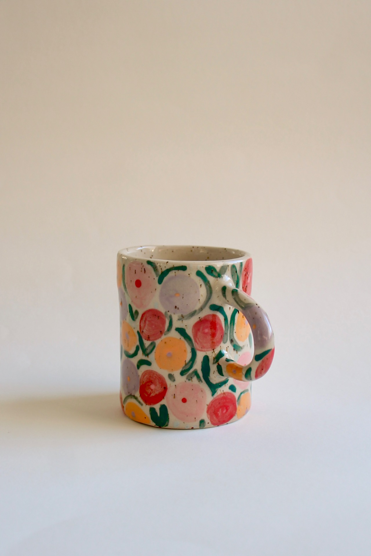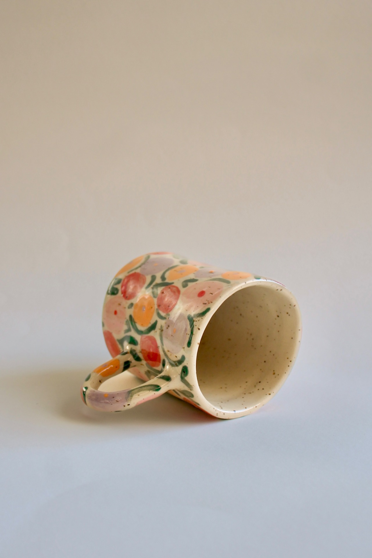 Mug with a hand-painted flower field pattern.